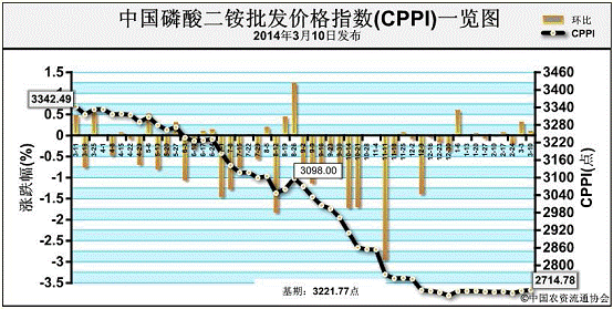 2014年3月10日中国磷酸二铵批发价格指数(CPPI)为2714.78点