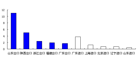 2006、2007年1-11月我国水果进出口分省(单位:亿美元)