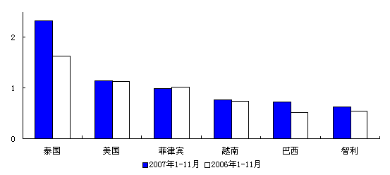 2007年1-11月我国水果进口分国别(单位:亿美元)