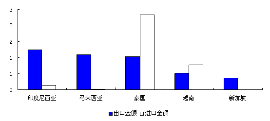 根据《中国与东盟全面经济合作框架协议》的“早期收获”计划,2004年起中国与东盟国家对包括水果、蔬菜在内的约600个种类的农产品开始下调关税,并于2006年取消这些农产品的进口关税。受此影响,2006年我国与东盟的水果贸易总额达到8.39亿美元,较2003年增长了68.5%。2007年1-11月,我国出口到东盟的水果为99.56万吨,占出口总量23.57%,同比增长16.62%;出口金额4.83亿美元,占出口总额的14.88%,同比增长24.44%。1-11月,我国从东盟进口水果90.75万吨,占进口总量73.78%,同比增长4.58%;进口金额4.30亿美元,占进口总额的49.77%,同比增长20.34%。我国与东盟的水果贸易以品种互补为主,进口的水果主要是龙眼、榴莲、荔枝、香蕉和莲雾等,出口的水果主要是苹果、梨、柑桔、桃罐头和枣类等。