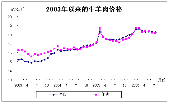 牛羊肉价格将保持稳定。今年以来,全国牛羊肉平均价格均保持在18元以上的高位,进入夏季后呈小幅震荡回落。1-7月份牛羊肉平均价格同为18.41元,同比分别上涨4.8%和4.6%。预计后期牛羊肉价格将保持稳定。