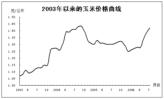 后期玉米价格仍将稳中略涨。今年1-7月份玉米平均价格为1.32元,较去年同期略涨0.8%。在新玉米上市前,市场需求仍以消耗库存为主,价格上涨压力加大。预计后期玉米价格仍将保持上涨态势,但大幅上涨动因不足。