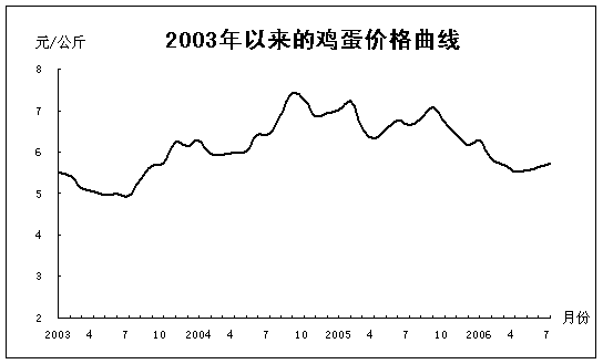 后期家禽产品价格将稳中略涨。家禽产品价格连续三个月小幅上涨,但仍低于去年同期水平。今年1-7月份鸡蛋、活鸡和西装鸡平均价格分别为5.75元、9.61元和9.68元,同比分别下降14.4%、14.5%和13.3%。6月下旬山西省暴发禽流感疫情后,部分省市家禽产品价格出现下跌,但7月份家禽产品价格总体有所回升,反映了消费者的消费信心逐步稳定。预计后期家禽产品价格将稳中略涨。