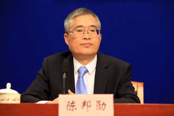 农业农村部定于2018年11月8日(周四)上午10时,在农业农村部新闻办公室举行新闻发布会,介绍2018年全国新农民新技术创业创新博览会有关情况,并回答记者提问,图为农业农村部办公厅副主任巡视员陈邦勋主持新闻发布会。农业农村部网站 梁宝忠摄