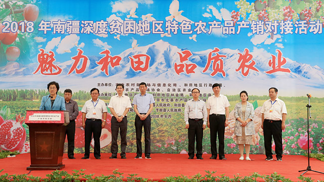 本次活动是2018年全国贫困地区农产品产销对接行动的第三场活动,以南疆和田地区、阿克苏地区、克孜勒苏柯尔克孜自治州和喀什地区等四地州农产品产销对接为重点,突出订货洽谈,重在推动产销双方建立稳定的购销关系,产销双方已在活动举办前进行了对接商谈。活动期间,组织开展了参观考察、启动仪式、县市及采购商推介、优质农产品展示品鉴、现场产销对接贸易洽谈、签约仪式和总结会等活动。