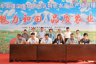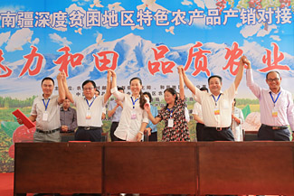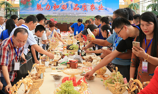 本网讯 8月28日,2018年南疆深度贫困地区特色农产品产销对接活动在新疆维吾尔自治区和田地区举办。14家企业代表现场签订了1.4亿元购销协议,来自全国10个省份58家大型采购商全年意向经销全疆农产品可达18.22亿元,交易数量达21.78万吨。中国农产品市场协会会长张玉香出席并讲话。