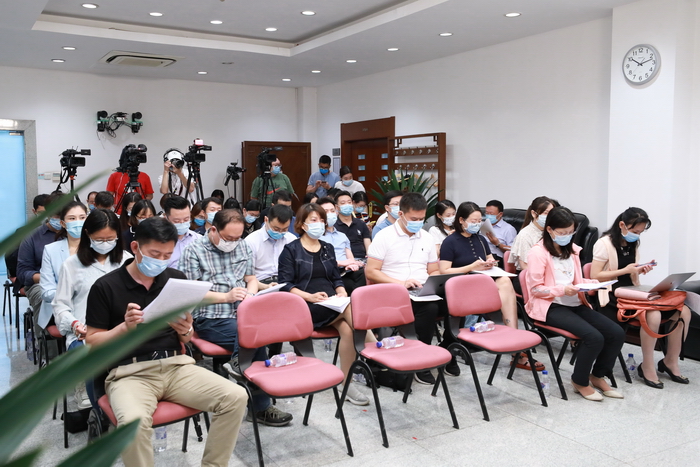 中国农民丰收节组织指导委员会定于9月1日(周三)上午10时,在农业农村部新闻办公室举行新闻发布会。中国农民丰收节组织指导委员会副主任、农业农村部副部长马有祥向媒体介绍2021年中国农民丰收节有关情况,并回答记者提问。图为新闻发布会现场。农业农村部网站 唐泓莉摄