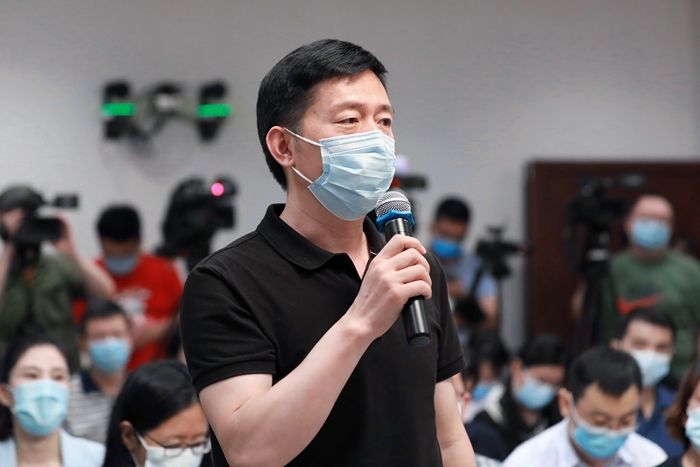 中国农民丰收节组织指导委员会定于9月1日(周三)上午10时,在农业农村部新闻办公室举行新闻发布会。中国农民丰收节组织指导委员会副主任、农业农村部副部长马有祥向媒体介绍2021年中国农民丰收节有关情况,并回答记者提问。图为中央广播电视总台中央电视台记者提问。农业农村部网站 唐泓莉摄