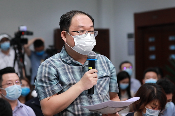 中国农民丰收节组织指导委员会定于9月1日(周三)上午10时,在农业农村部新闻办公室举行新闻发布会。中国农民丰收节组织指导委员会副主任、农业农村部副部长马有祥向媒体介绍2021年中国农民丰收节有关情况,并回答记者提问。图为经济日报记者提问。农业农村部网站 唐泓莉摄