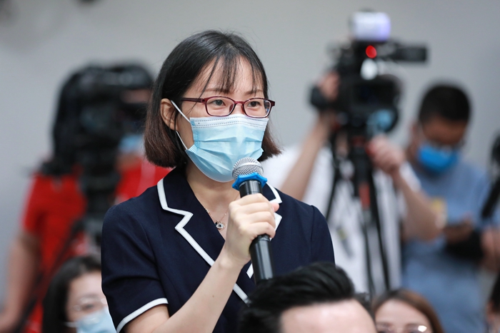 中国农民丰收节组织指导委员会定于9月1日(周三)上午10时,在农业农村部新闻办公室举行新闻发布会。中国农民丰收节组织指导委员会副主任、农业农村部副部长马有祥向媒体介绍2021年中国农民丰收节有关情况,并回答记者提问。图为农民日报中国农网记者提问。农业农村部网站 唐泓莉摄