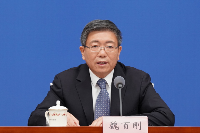 2023年11月17日(周五)上午10时,农业农村部新闻办公室举行新闻发布会,介绍2023年海峡两岸现代农业博览会·海峡两岸花卉博览会有关情况,并回答记者提问。图为农业农村部总经济师、办公厅(台办)主任、新闻发言人魏百刚介绍有关情况。农业农村部网站 刘泽栋摄