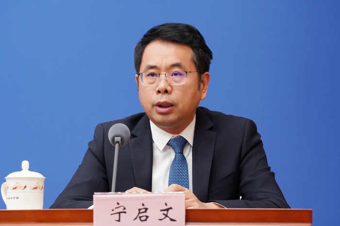2023年11月17日(周五)上午10时,农业农村部新闻办公室举行新闻发布会,介绍2023年海峡两岸现代农业博览会·海峡两岸花卉博览会有关情况,并回答记者提问。图为博览会组委会秘书长、中国农业电影电视中心主任宁启文回答记者提问。农业农村部网站 刘泽栋摄