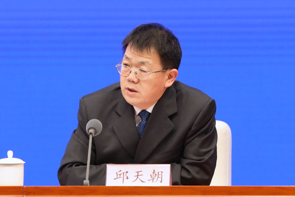 国务院新闻办公室于2019年11月25日(星期一)上午10时举行国务院政策例行吹风会,请农业农村部副部长余欣荣,农业农村部新闻发言人、办公厅主任广德福,国家发展改革委农村经济司负责人邱天朝,财政部农业农村司负责人许留庆介绍《国务院办公厅关于切实加强高标准农田建设提升国家粮食安全保障能力的意见》有关情况,并答记者问。图为国家发展改革委农村经济司负责人邱天朝回答记者提问。农业农村部网站 丛琳摄