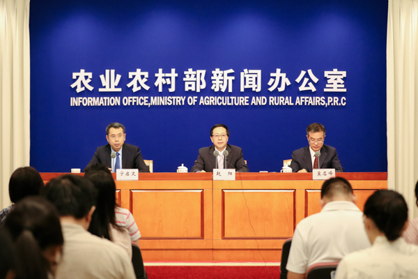 农业农村部于2019年9月18日(周三)上午10时在农业农村部新闻办公室举行新闻发布会,介绍实施家庭农场培育计划有关情况,并回答记者提问。图为新闻发布会现场。农业农村部网站 李镆摄