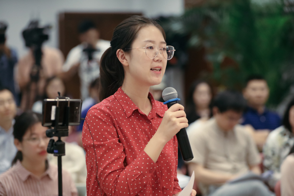 农业农村部于2019年9月18日(周三)上午10时在农业农村部新闻办公室举行新闻发布会,介绍实施家庭农场培育计划有关情况,并回答记者提问。图为中央广播电视总台央视记者提问。农业农村部网站 李镆摄