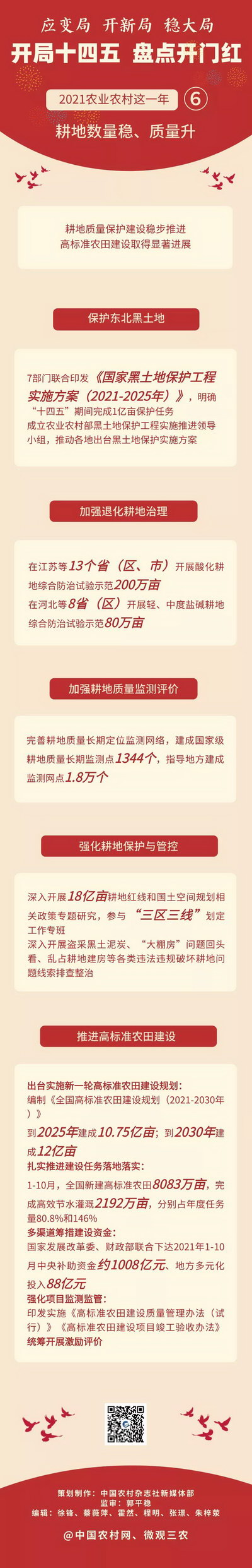 2021年,农业农村部认真贯彻落实党中央、国务院决策部署,扎实推进耕地质量保护建设,大力推进高标准农田建设,各项工作进展顺利。