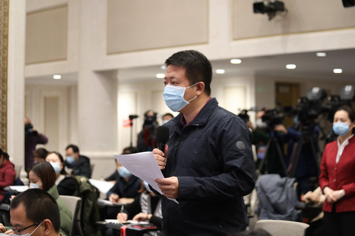 国务院新闻办公室定于1月13日(星期三)10时举行新闻发布会,请农业农村部副部长刘焕鑫介绍落实五中全会精神,全面推进乡村振兴有关情况并答记者问,图为中央广播电视总台央视记者提问。农业农村部网站 郭文静摄