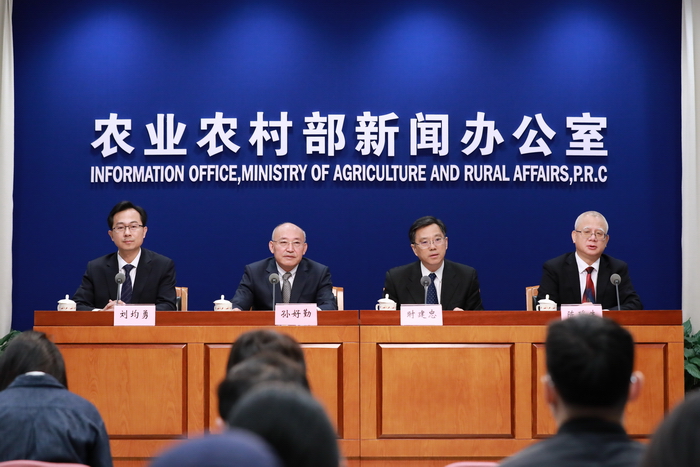 2021年428日(周三)上午10时,农业农村部新闻办公室举行新闻发布会,介绍新一轮畜禽遗传改良计划有关情况,并回答记者提问。图为新闻发布会现场。农业农村部网站 唐泓莉摄