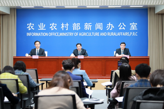 2023年4月18日(周二)上午10时,农业农村部新闻办公室举行新闻发布会,介绍国家农作物优良品种推广目录有关情况,并回答记者提问。图为新闻发布会现场。农业农村部网站 李宜杰摄
