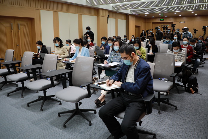 2023年4月18日(周二)上午10时,农业农村部新闻办公室举行新闻发布会,介绍国家农作物优良品种推广目录有关情况,并回答记者提问。图为新闻发布会现场。农业农村部网站 李宜杰摄