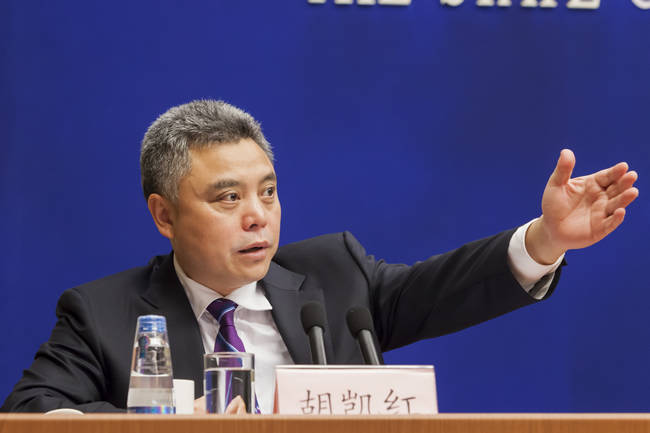 国新办新闻发言人胡凯红邀请记者提问(农业部网站记者 李卫东 摄)