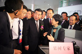 开幕式前,回良玉等兴致勃勃地参观了交易会展厅。回良玉对各地在转变农业发展方式、推进现代农业发展方面取得的成就予以充分肯定,称赞本届农交会亮点突出,特色鲜明,充分展示了“十一五”以来农村改革发展取得的巨大成就,生动反映了新形势下统筹城乡经济社会发展取得的新进展。他说,要坚持把农交会办成精品,通过这个重要窗口,不断推动农业合作,大力促进农产品贸易,积极推进城乡交流。