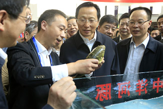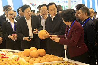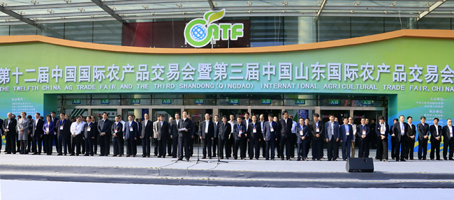 本网讯:10月25日,由农业部和山东省政府共同主办的第十二届中国国际农产品交易会在山东青岛国际会展中心开幕。农业部部长韩长赋、山东省常务副省长孙伟出席开幕式并参观。