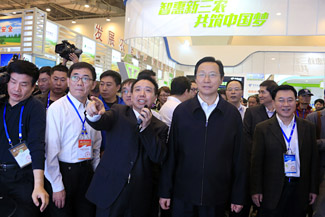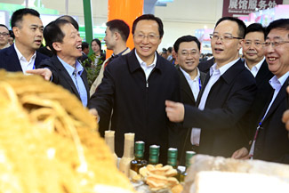 韩长赋在开幕式上指出,今年,在中央和各级党委政府的高度重视下,在各地区各部门和亿万农民的共同努力下,农业战胜多重困难,实现稳中求进,又迎来了一个丰收年。粮食再获好收成,肉蛋奶、果菜茶、水产品等稳定发展,农产品品种丰富、供应充足,农民收入继续较快增长。农业农村的好形势,为经济社会发展大局奠定了坚实基础、提供了有力支撑。农业丰收之后更需要重视搞活农产品流通。农业部门要在抓好农产品生产的同时,大力推动农产品流通和营销。充分发挥政府调控和市场机制的作用,大力发展订单农业,创新营销方式,拓宽营销渠道,推进农产品电子商务,扶持发展直营直销,加快建设农产品产地市场体系,完善农户营销服务,真正让农民增产又增收。希望国内外参展企业和采购商通过展会加强交流,把握商机,积极合作,实现共赢。