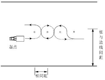 手扶式拖拉机考试应挂接挂车进行。按考试图规定的路线行驶,从起点按虚线绕桩倒车行驶,再按实线绕桩前进驶出。