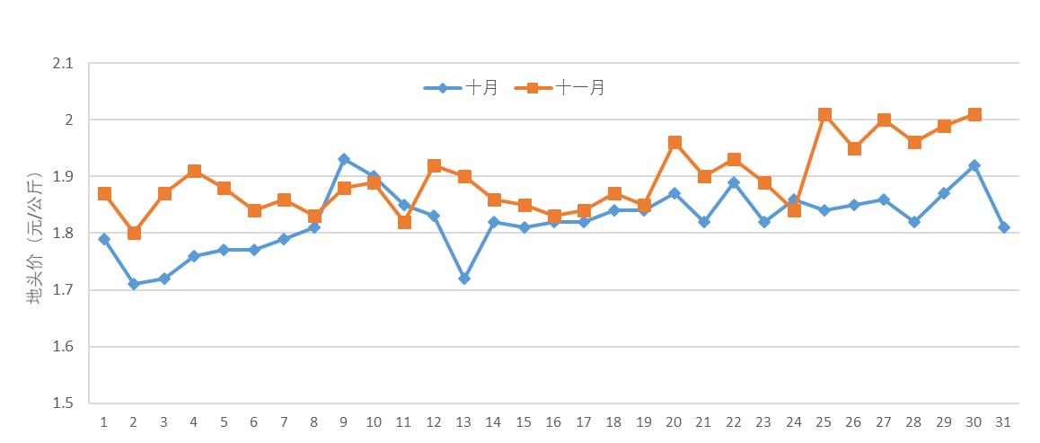 2019年11月份全国蔬菜地头价走势图