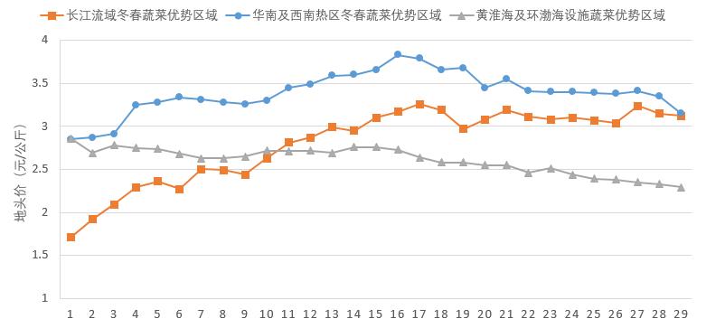 2020年4月份全国冬春蔬菜优势区域地头价走势图