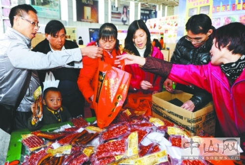 广东省中山市黄圃镇展销会现场,前去购买腊味的市民络绎不绝,商家门庭若市。