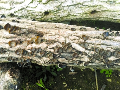 选择直径12-20厘米、长度1-1.2米左右的蔡木、栎木等多年生阔叶硬杂木。木材不宜过粗、过长,否则不方便管理及将来采耳。木材要在冬季或早春树木休眠期砍伐,并且要求树皮完好率在99%以上、树皮与木质部紧密结合且相对较直的木材,木质越硬越好。
