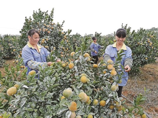 上林县柑橘丰产又丰收,成为群众致富、贫困户脱贫新“引擎”。 蓝 洲/摄
