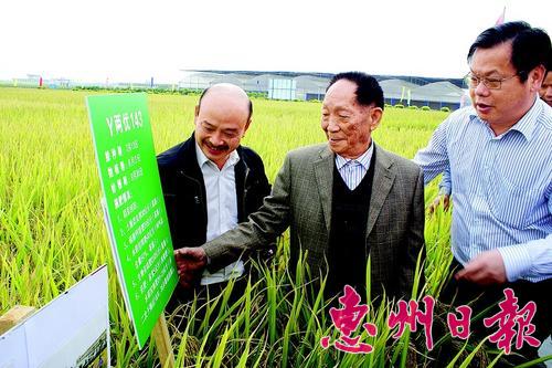 2012年11月,袁隆平(中)来惠了解现代农业发展情况。