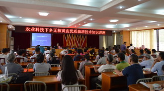 省农科院作物所李少雄研究员在云安区富林镇花生种植专题讲座上对花生种植的选种、育苗、栽培管理、肥水管理、病虫害防治等环节进行了详细的讲授,特别对花生的病虫害防治选择进行了深入详细的讲解,使农民对花生优质高产种植技术有一个比较系统的认识,进一步提高当地农民种植的积极性。省农科院果树所许林兵研究员在云城区南盛镇对香蕉种植技术、病虫害防治进行了讲授。省农科院果树所潘建平研究员在郁南县建成镇对黄皮种植技术、病虫害防治进行了讲授。省农科院植保所彭埃天研究员在郁南县河口镇对金煌芒种植技术、病虫害防治进行了讲授。其中,彭埃天研究员、潘建平研究员深入云安区都杨镇金煌芒种植场现场指导病虫害防控、高产栽培生产。