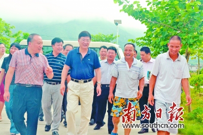 中央党校副校长、教授黄浩涛在佛冈县委书记华旭初的陪同下,深入石角镇大田村了解佛冈农村综合改革开展情况。程浩 摄