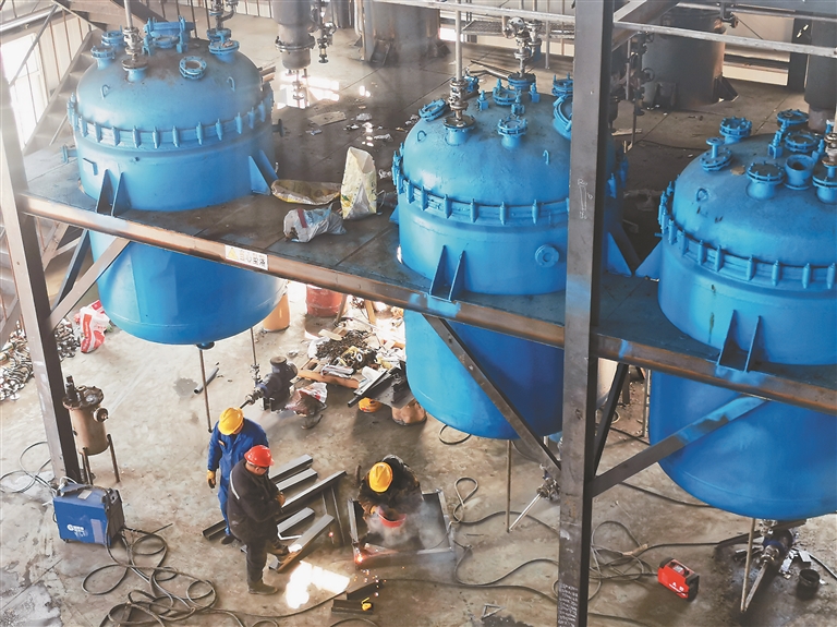 龙源科技有限公司年产5000吨医药中间体项目建设现场。