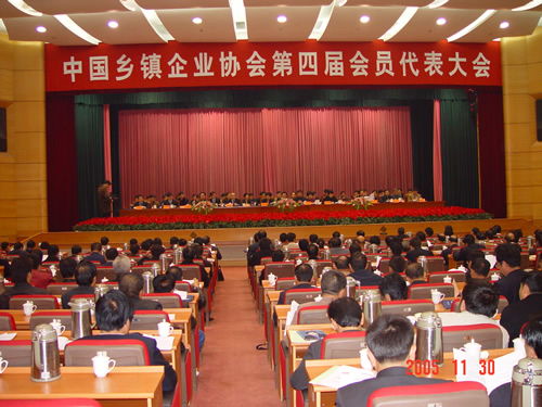 中国乡镇企业协会作为全国乡镇企业的群众性社会团体组织,自1990年成立以来,始终围绕“三农”、推动乡镇企业的持续健康发展这个总体目标,坚持“对上与政府沟通协调,对下为企业提供服务”的原则,为乡镇企业提供了大量富有成效的服务,为政府决策提出了许多很好的意见和建议,为促进全国乡镇企业的发展做出了重要贡献。在召开第三届三次理事会(通讯会)的基础上,于2005年11月30日在南京召开了第四届会员代表大会。农业部范小建副部长、中共江苏省委张连珍副书记、江苏省人民政府黄莉新副省长以及农业部、江苏省有关部门的领导同志出席了大会开幕式,范小建副部长、张连珍副书记分别代表农业部和江苏省委、省政府致辞。会议按照《中国乡镇企业协会章程》和有关规定,通过投票选举产生了372名理事,组成第四届理事会。并在同日召开的新一届理事会上,投票选举产生了72名常务理事和新的领导工作机构。鲁冠球当选为第四届理事会会长,农业部乡镇企业发展中心主任叶贞琴当选为副会长兼秘书长,同时聘请原农业部部长何康同志为名誉会长。
