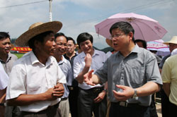 7月3日一大早,农业部副部长范小建与参加“全国免耕栽培技术现场会”的代表一起到广西玉林市兴业县马唐村和南宁市横县,考察观摩当地水稻、玉米免耕栽培技术的推广应用情况。