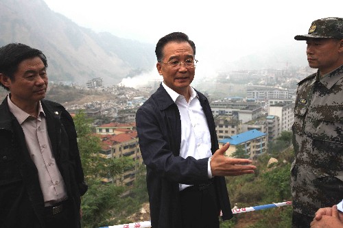 伫立高地,眺望良久,温家宝转身对当地干部和负责救援的部队负责人说,四川汶川大地震是新中国成立以来强度最大、损失惨重、波及范围最广而且援救最困难的一次地震,现在摆在我们面前最重要的任务,就是要做好受灾群众的安置工作,其中有三项工作比较紧迫:一是解决住的问题;二是解决卫生防疫问题,要坚决做到灾后无大疫;三是防范次生灾害,特别是防范堰塞湖溃堤造成新的损失。