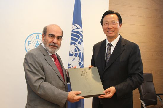 本网讯 10月14日上午,农业部部长韩长赋率团访问位于罗马的联合国粮农组织总部,与粮农组织总干事何塞·格拉齐亚诺·达席尔瓦进行了会谈。
