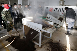 记者在观摩会现场看到,病死动物经过无害化处理设备分切、绞碎、发酵、杀菌、干燥、添加专用微生物菌,48小时后,动物尸体就转化成了无害粉状有机原料,整个处理过程无烟、无臭又环保,实现了“源头减废,消除病原菌”的效果。