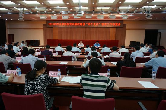 会议指出,农业部党组高度重视党风廉政建设工作,部党组书记、部长韩长赋亲自抓党风廉政建设“两个责任”的落实,推动全部上下形成了机关各级党组织和纪检组织落实主体责任和监督责任紧抓不放、一抓到底,不断向纵深发展的良好格局,并取得了明显成效。为深入贯彻中央关于落实党风廉政建设“两个责任”的要求,全面落实《中共农业部党组、中央纪委驻农业部纪检组关于落实党风廉政建设主体责任、监督责任的意见》,农业部党组决定成立11个督查组,自2015年5月中旬至6月下旬,对农业部64个司局、派出机构和直属单位落实党风廉政建设“两个责任”情况进行一次全面检查。这是去年印发《中共农业部党组、中央纪委驻农业部纪检组关于落实党风廉政建设主体责任、监督责任的意见》以来的第一次督查,也是农业部对各单位党风廉政建设责任制落实情况进行的第一次全面督查。