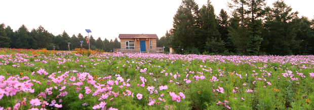鴜鹭湖梯田花海,种植多种花卉,陆生花卉有虞美人、波斯菊、百日草等,水生花卉有藕莲、睡莲、千屈菜、雨久花等30多样品种,20余种花色。国内首创的丘陵梯田花卉种植,把完美的山地曲线因层次分明的色带相结合,更显异彩纷呈。夏秋两季,错时开放,花期可延续3个月之久。当前,鲜花竞相开放,广袤丘陵,色彩缤纷,形成了我国东北地区面积最大、品种最全,花色最多,距都市最近的生态花卉公园。