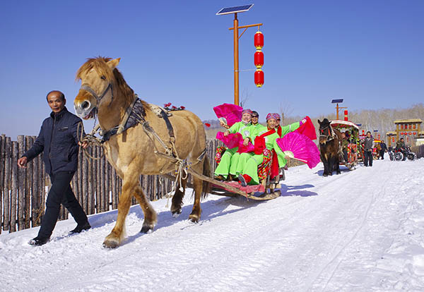 沿江村利用“旅游+”模式,着力构建以生态休闲、度假养生、文化旅游、观光体验、户外运动、民俗民宿为主体的旅游产品体系。冬季的沿江村以“嬉冰雪、品民俗、住民宿”为主题推出“马拉爬犁”绕村行、“林海雪原”探秘、碰撞悠悠球、玩雪圈、踏雪板、雪地漂移等充满激情的系列冰雪运动项目;开展秧歌表演、冰上篝火、雪山烟花、土特产展销等活动,逐步形成全域旅游的发展格局,全力打造“长白山下旅游强镇”。