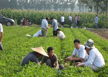 9月10日,青岛市农委对即墨市实施的花生万亩高产创建示范片“十、百、万”高产示范工程进行了产量复测验收。测产验收组认真审查了有关技术档案和初测结果,在段泊岚镇岭后村的项目区进行复测验收,对“十、百、万”每种类型随机抽查复测3个点,每点收获0.01亩,十亩高产攻关田平均亩产达到612.3公斤,百亩高产示范方平均亩产达到561公斤,万亩高产示范片平均亩产达到393.8公斤,均超过农业部规定的产量目标。