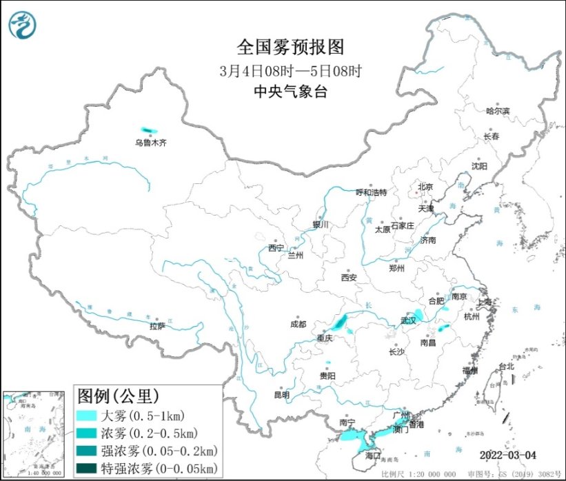 预计4日上午,北部湾北部部分海域、琼州海峡、雷州半岛沿岸海域将有能见度低于1公里的大雾。4日夜间至5日早间,北部湾北部部分海域、琼州海峡、广西沿岸海域、雷州半岛沿岸海域、粤西沿岸海域、海南岛北部沿岸海域将有能见度低于1公里的大雾。中央气象台于4日6时继续发布大雾黄色预警。