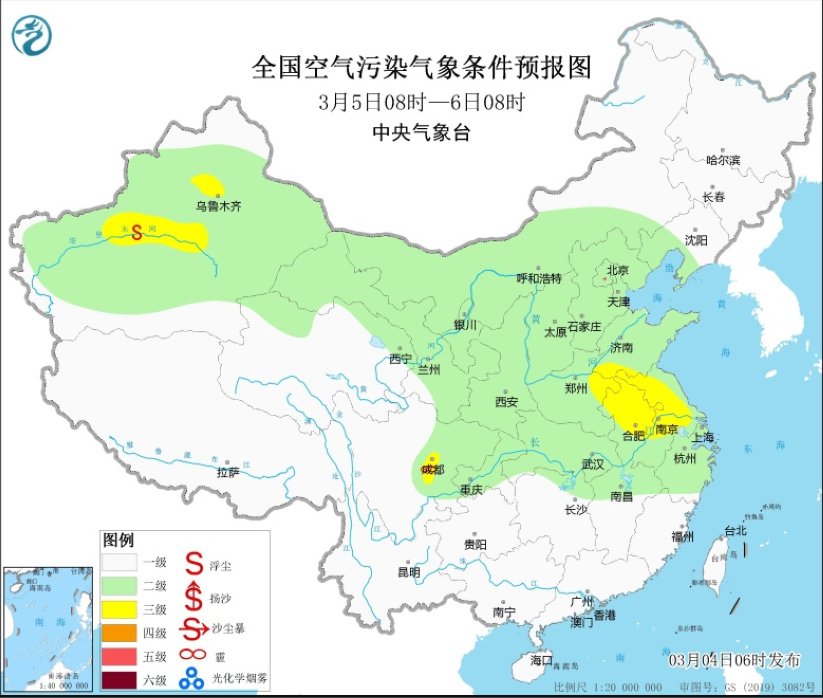 未来一周,新疆天山北坡大气扩散条件较差。此外,新疆南疆盆地多扬沙或浮尘天气。4日,内蒙古中西部、宁夏北部、陕西北部等地的部分地区有扬沙或浮尘天气,其中内蒙古西部局地有沙尘暴。