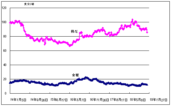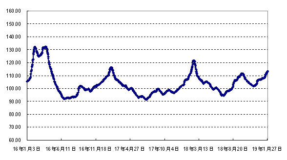 据农业农村部监测,2019年第4周(2019年1月21日- 1月27日,下同)“农产品批发价格200指数”为110.90(以2015年为100),比前一周升1.92个点;“‘菜篮子’产品批发价格200指数”为112.31(以2015年为100),比前一周升2.19个点。重点监测的50家批发市场60个品种交易总量为54.87万吨,比前一周增1.8%。